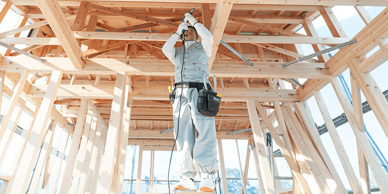 木造住宅において、柱や梁、棟木を組み立てながら、建物のカタチを建設する工事です。