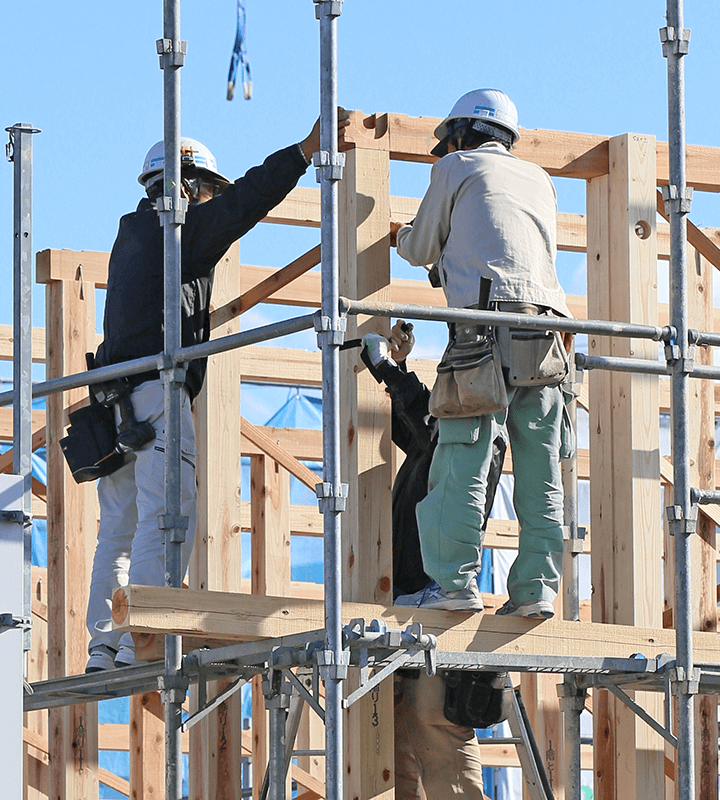 木造住宅において、柱や梁、棟木を組み立てながら、建物のカタチを建設する工事です。